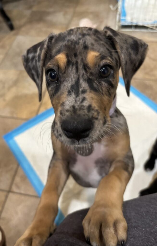 Arrived April 2026 Location: NJ Age: 8WKS Female Children: good with all Cats: untested Dogs: good with all