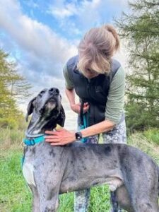 Rocky Came to MAGDRL in July 2025 (1) Children: good with children 8+ Dogs: good with most Cats: good with cats Rocky is a 2 year old male merle Dane with natural ears. He is a sweet and active young dog who loves to exercise and hang out with his