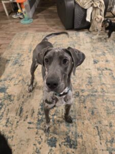 Charlotte Arrived December 2025 Location: West Virginia Children: Good Dogs: Good Cats: Good Meet Charlotte, a beautiful one-year-old Great Dane who is still growing into her big paws and her