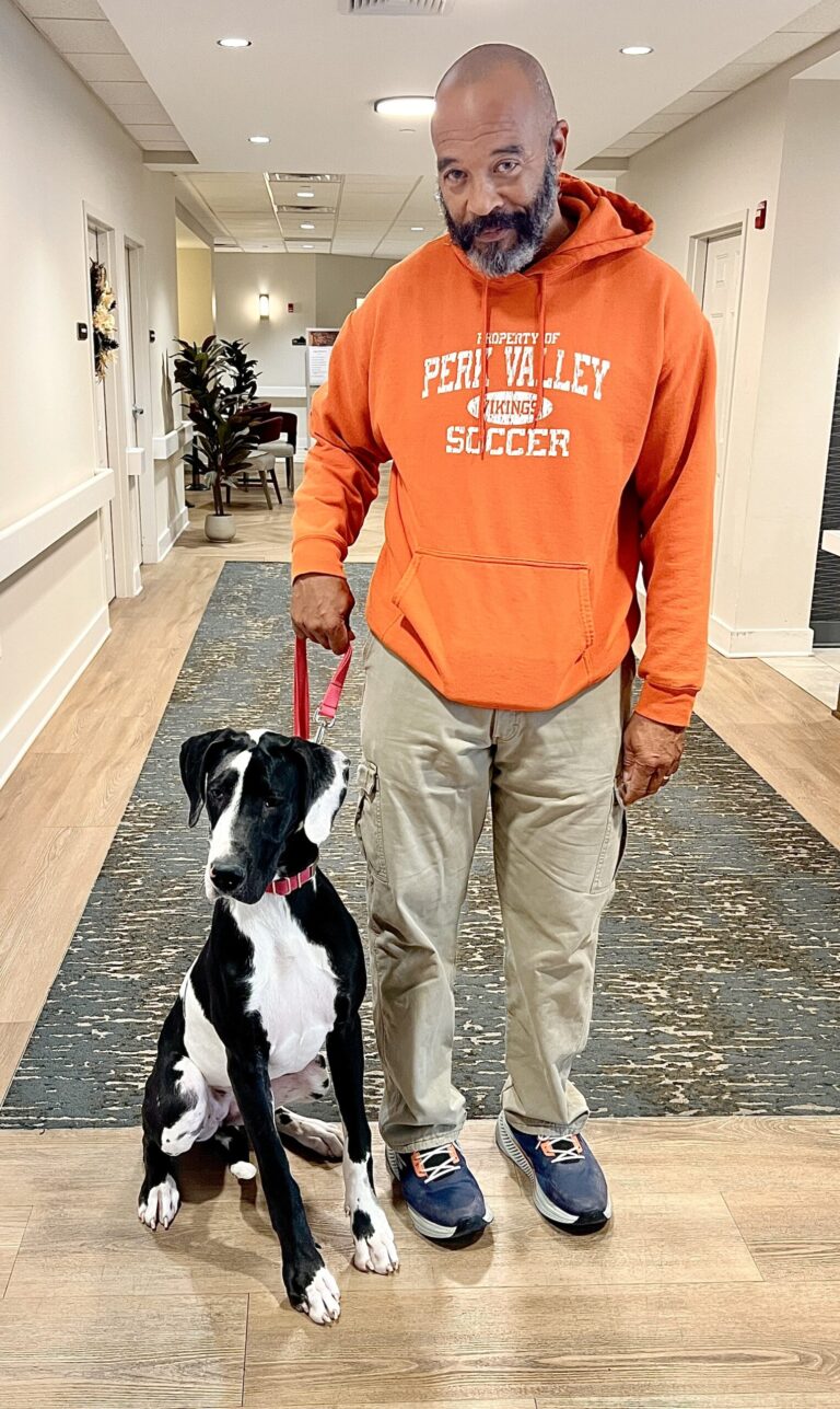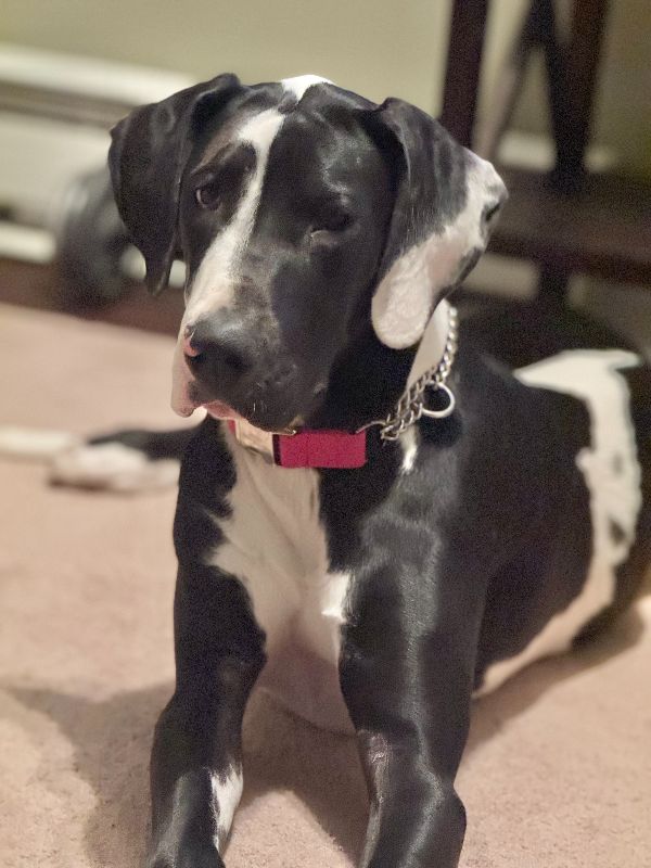 Daisy came into rescue in October when her family found that as a puppy she was just too much to handle. She went into a foster home who immediately fell in love with her. She is living with another dane and meeting new people and animals She is learning what the outside world is all about and we are so excited for her. Thank you the Warren family for opening your home and your hearts to this beautiful girl. Congratulations to all.