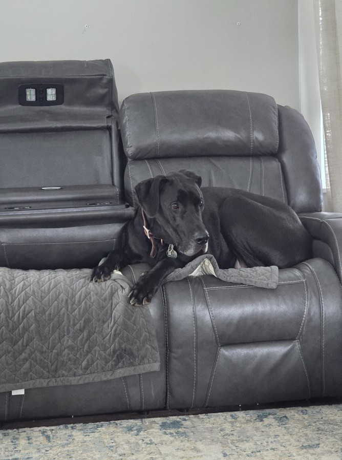 Deacon is a handsome, 5‑year‑old Great Dane with a calm, laid‑back personality that wins over everyone he meets. He enjoys nothing more than lounging near his people, soaking up affection, and quietly being part of whatever’s happening at home. If you’re looking for a devoted companion who’ll lean in for pets, offer gentle cuddles, and always be by your side, Deacon is your guy.
