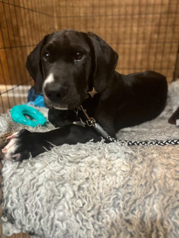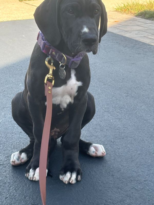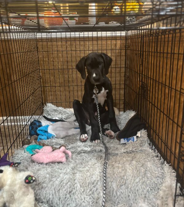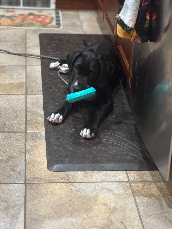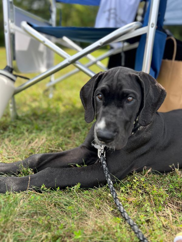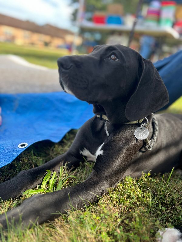 Fiona is a 3.5 month old black female puppy. Fiona comes from an accidental breeding of two wonderful Danes who have amazing temperaments.