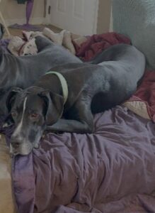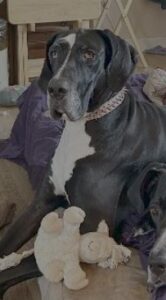 Hermie is a 8 month old black Dane mix. He is neutered and UTD on vaccinations. He is 100 lbs of gorgeous guy, that is not sure if he is a bunny or a horse. He does little bunny hops when he gets excited, and on his walks he prances like a small pony. He knows basic commands, sit, stay, paw and rides well in the care. Hermie sits patiently for his food. He has not shown any type of aggression. He just needs basic manners and an experienced owner that can teach him the right things. He is very smart and willing to learn.