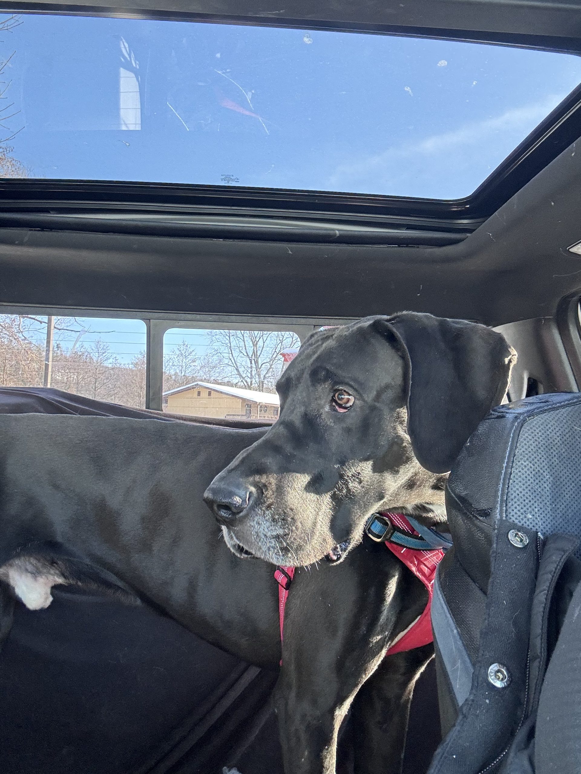 Hunter is a big beautiful black Dane with natural ears who just arrived in his foster home after being neutered and gastropexied. He is settling in and recovering nicely. More info and pics coming soon!