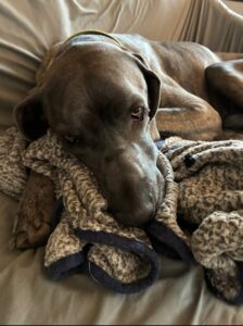 Because her spirit is as big as she is, she’s best in a home with people familiar with large breeds and with older kids, as she will knock little ones down with her exuberance. She loves small children and can be gentle with them, but she just doesn’t know her size. She would love another big dog to play with. If you’re ready for laughter, love and adventure, Phoebe is looking for a special family to be with her every moment of life’s great experiences. If you ever thought about doing agility with a Dane, Phoebe is your girl! Training will be a requirement of Phoebe’s adoption. You do not want to miss out on this spirited soul with her infectious joy for life.