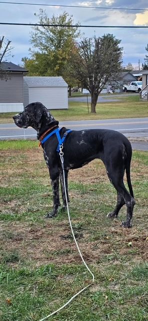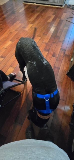 Scooby-Dee is in good overall health and up to date on vaccines. She is scheduled to be spayed and have a gastropexy (a preventive stomach-tacking procedure common for giant breeds) in November.