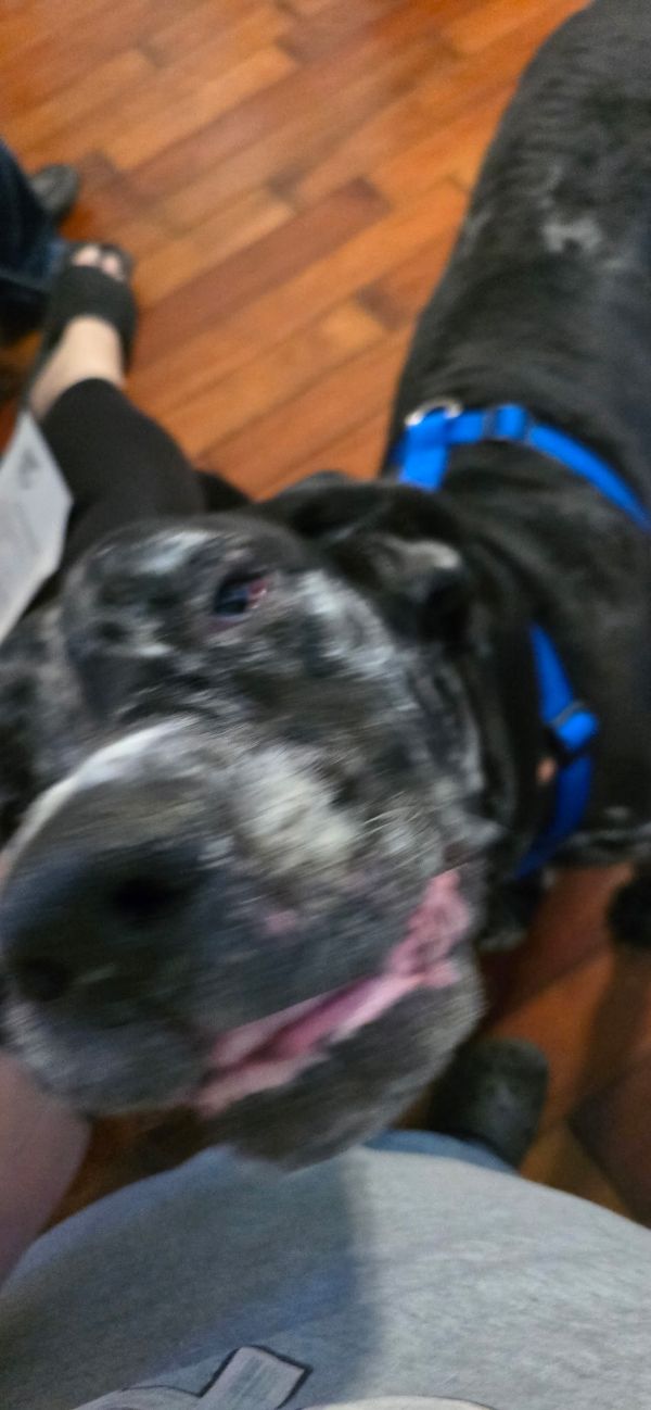 Scooby-Dee is a 4½-year-old purebred Great Dane weighing about 95 pounds (6). This beautiful merle girl is sweet, affectionate, and full of love — ready to find a forever family who’ll give her the same care and kindness she gives everyone around her.