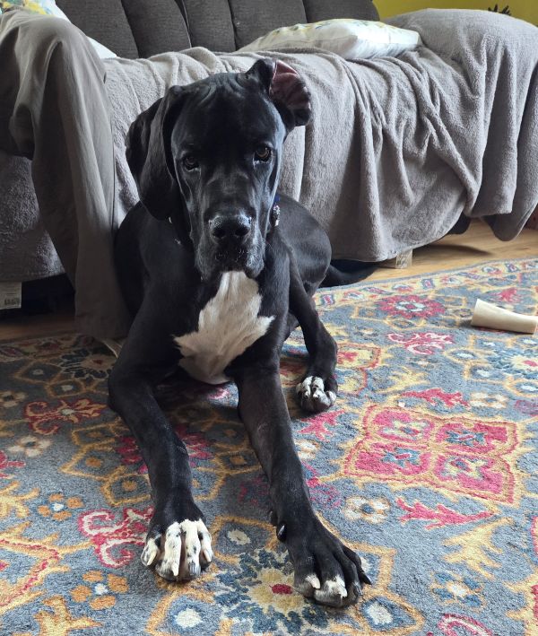 Oakley Came to MAGDRL in December 2025 Location: Children: 11 and up Dogs: good with large dogs, unknown to small dogs Cats: Unknown Oakley came into rescue through a veterinary